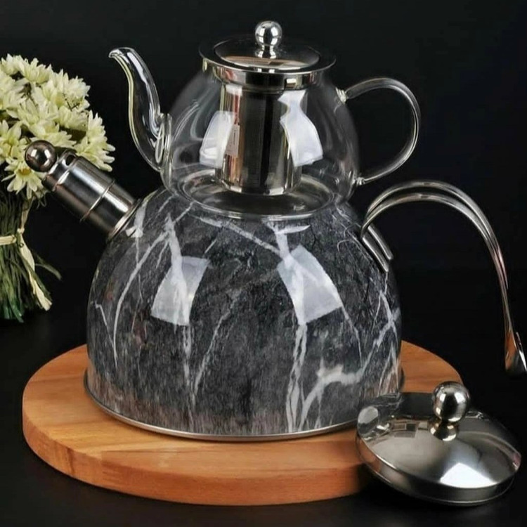 ظرفیت کتری 3 لیتر و قوری 0/8 لیتر می باشد. کتری دارای درب جداگانه نیز می باشد. این ست محصول کشور چین می باشد.